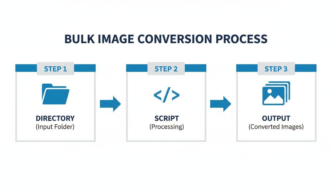 This diagram shows how an automated system can take a whole directory of images and generate the converted outputs you need, completely eliminating the manual grind.