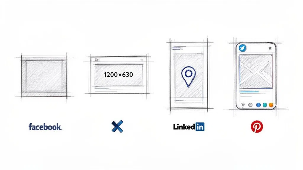 Getting these nuances right is crucial. An image that looks stunning on Facebook might get awkwardly cropped on X (formerly Twitter) or feel completely out of place on Pinterest. By tweaking your approach for each platform, you guarantee your content makes a killer first impression, no matter where it’s shared.