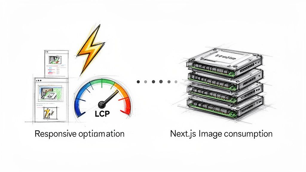 For instance, I've seen real-world Next.js projects achieve incredible results. One mid-sized marketing site managed to slash its total image payload by 60%, dropping from 3 MB to a lean 1.2 MB. This single change led to a massive 1.3-second reduction in its Largest Contentful Paint, bringing it from 2.5 seconds down to a blistering 1.2 seconds. You can dig deeper into how these optimisations lead to blazing-fast loading times.