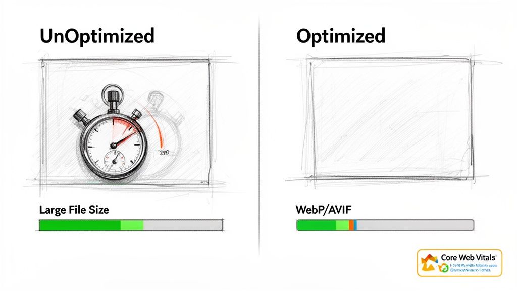 For most online stores, the single biggest culprit behind slow-loading pages is large, unoptimised product images. You absolutely need high-quality visuals—customers want to see crisp, detailed photos before buying. The problem is, those beautiful, high-resolution files are often huge, bringing your page speed to a grinding halt.