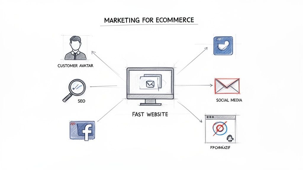 Jumping into marketing for e-commerce can feel like trying to drink from a fire hose. The key is to step back and draw up a blueprint first. This isn't about throwing tactics at the wall to see what sticks; it's about building a solid, interconnected system where every single marketing effort fuels the next, creating a powerful growth engine for your store.